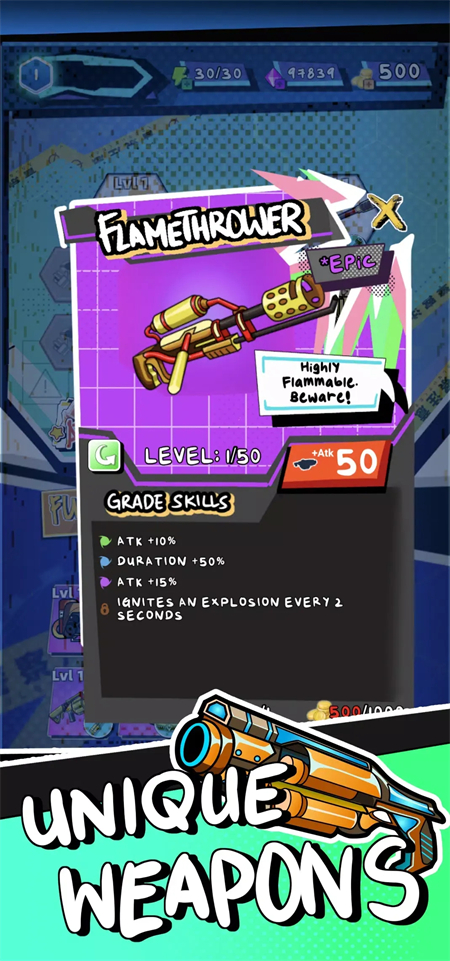 - 单手极致操作:你只需一根手指即可控制英雄移动与自动攻击,真正实现了随时随地轻松游玩。这种设计降低了入门门槛,让你能迅速沉浸在与成百上千僵尸对抗的割草快感中。