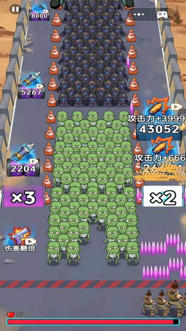游戏采用自动射击机制,你只需控制角色左右移动。这降低了上手门槛,但将核心技巧聚焦于“走位”。你需要像一位优雅的舞者,在僵尸的包围圈中穿梭,利用移动来规避伤害,并将火力覆盖到最关键的敌人身上。