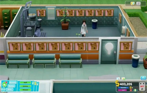 - 诊治千奇百怪的病症:这是游戏幽默感的集中体现。你将面对“光头症”(患者头上 literal 长了一个灯泡)、“喜剧病”(患者无法停止讲冷笑话)等令人捧腹的疾病。每种病症都需要特定的诊断设备和治疗房间,考验你的医院综合配置能力。