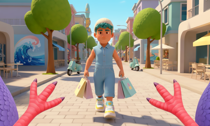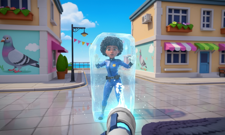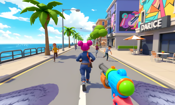 游戏打造了一个动态、细节丰富的3D卡通都市。这里没有空气墙,你可以真正意义上地从城市一端自由飞往另一端,每一处屋顶、每一条小巷都值得探索。