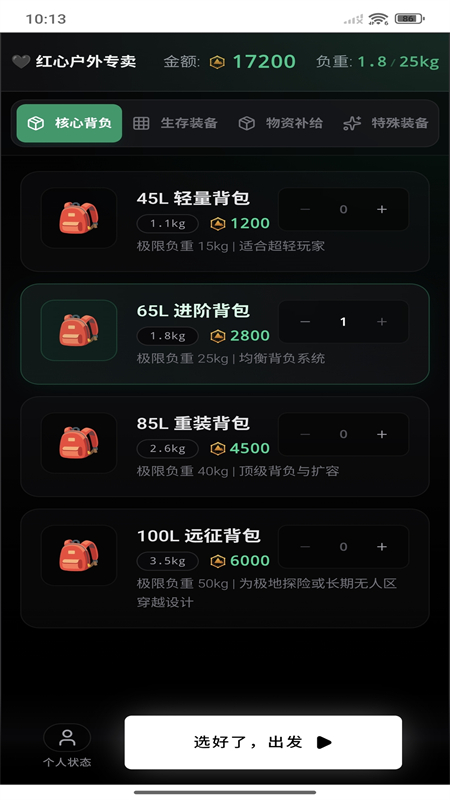 - 食物:优先购买高热量、重量轻的压缩饼干和能量棒。避免携带酒类,它在游戏中会加速体温流失。