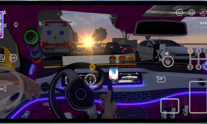 游戏采用先进的3D物理引擎,车辆的重量感、加速时的推背感、过弯时的侧倾以及不同路面的反馈都做得相当出色。配合高清逼真的内饰建模——从闪烁的仪表盘到可调节的座椅视角,你仿佛真的坐在驾驶舱内。特别是那经过精心录制的引擎轰鸣与排气声浪,每一次踩下油门都是对耳膜的激情馈赠。