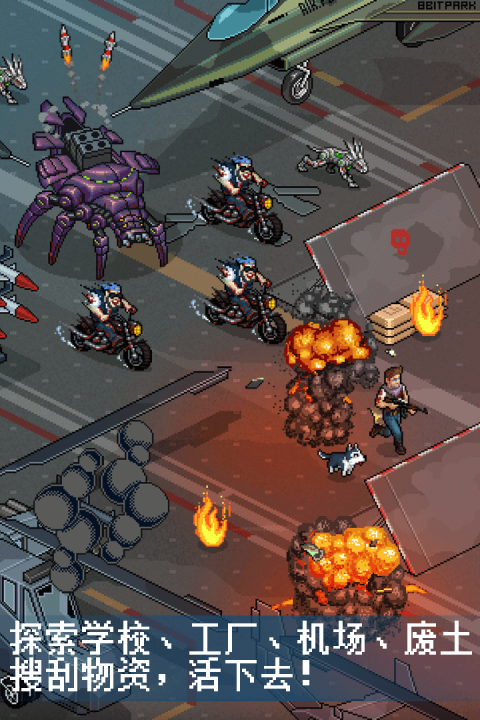 - 庞大的像素废土世界:经典的像素美术风格构建了一个细节丰富、区域多样的广阔地图。从破败的城市到荒芜的野外,每一处都可能有新的故事或威胁,任你自由探寻。