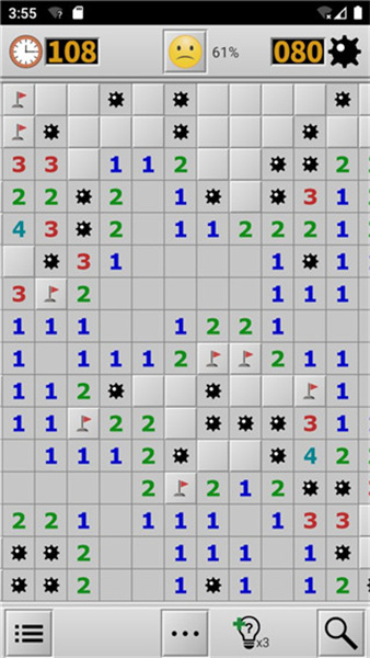 - 原汁原味的核心玩法:游戏严格遵循经典扫雷规则。点击格子,出现的数字代表其周围八格中隐藏的地雷数量。你需要运用逻辑推理,判断安全区与雷区,通过标记旗帜来排除所有地雷。这种纯粹依靠智力的挑战,是其经久不衰的灵魂。