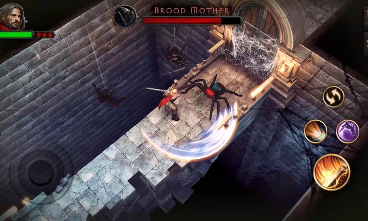 游戏画面采用深邃的暗黑色调,场景设计如腐朽城堡、幽暗森林都充满了哥特式细节,角色与怪物造型极具视觉冲击力。音效方面,低沉的弦乐与诡异的环境旋律交织,配合精准的技能音效,共同构建了一个令人全情投入的沉浸式世界。
