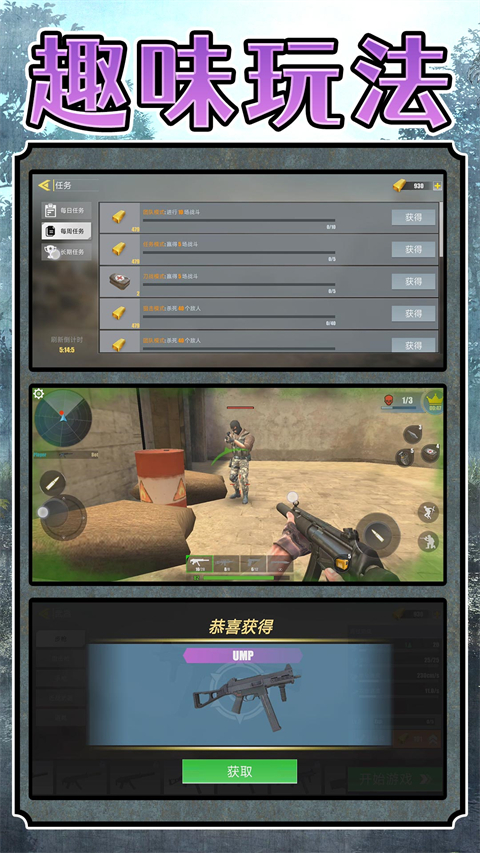 图示:通过积累金砖,可以在商店解锁和购买各类强力枪械。