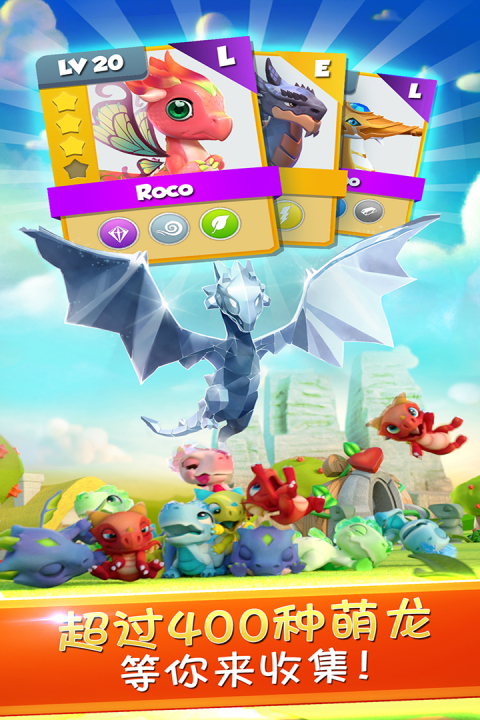 - 超过350种萌龙收藏:游戏提供了如同豪华拼图收藏般的乐趣。收集、繁育超过350种形态各异的龙,满足你的收集癖,看着龙岛上伙伴成群结队,成就感十足。