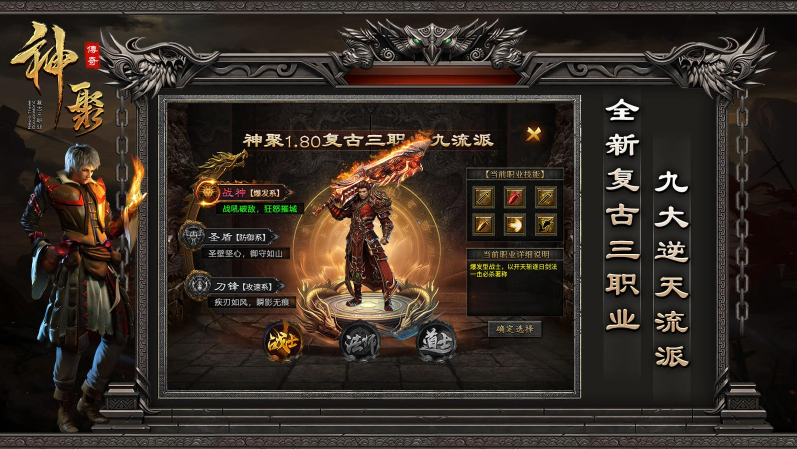 神聚传奇在传统三职业基础上,精心设计了九种各具特色的流派,每种流派都拥有独特的技能体系和玩法风格: