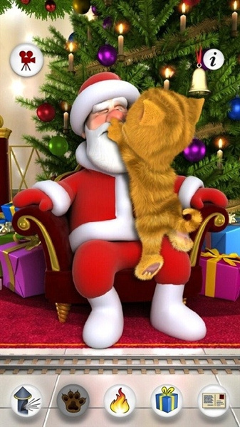 - 直观点击互动:进入游戏后,整个屏幕就是你的游乐场。点击圣诞老人的红鼻子,他会打喷嚏;连续点击他的脑袋,他会晕头转向,表情滑稽。点击调皮的金杰猫,它会用滑稽的腔调模仿你说话,创造无数笑料。