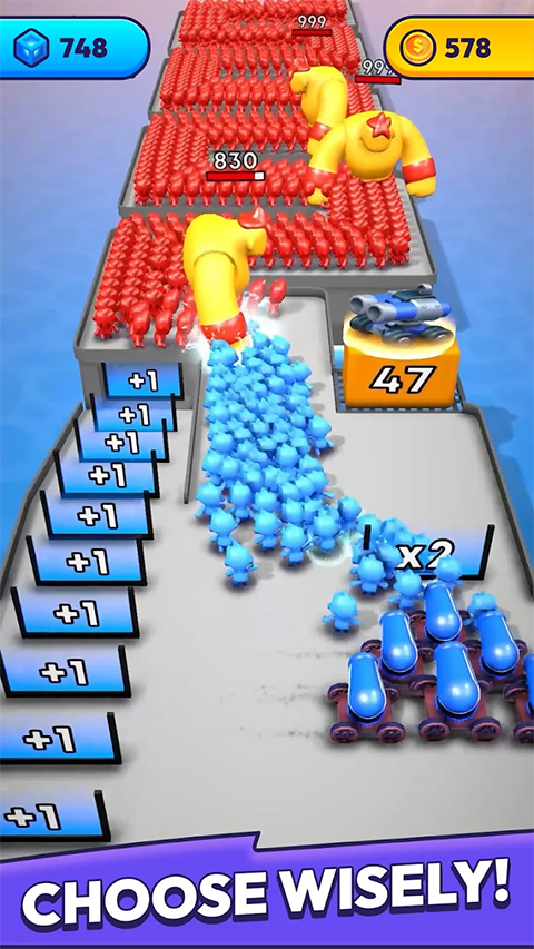 - 兵力倍增:战场上分布着不同倍数的“蓝色倍增门”。让你的部队穿过这些门,兵力数量会瞬间翻倍,这是积累优势、以量取胜的关键。