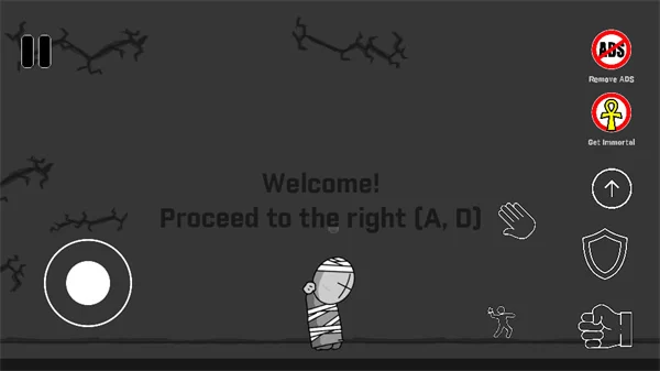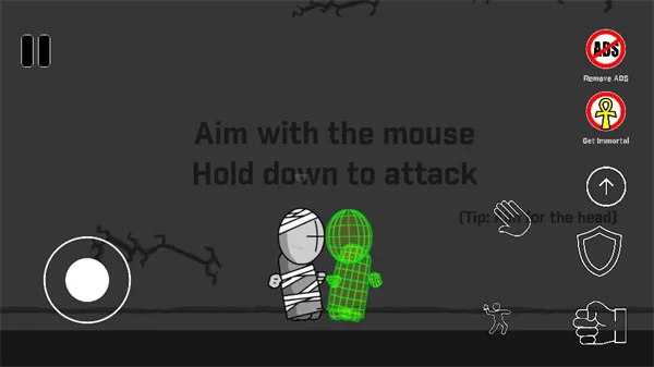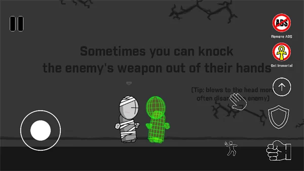 - 攻击与防御:屏幕右侧的按钮集成了核心动作。拳头图标用于近战攻击,盾牌图标用于举盾防御,而上箭头图标则控制角色跳跃。合理搭配攻防跳是应对近战敌人的要诀。