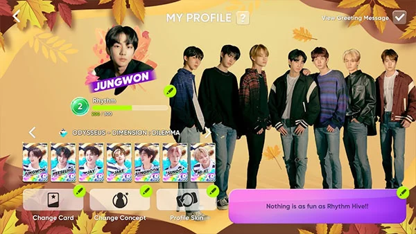 除了经典的音乐节奏玩法,RHYTHM HIVE最新版引入了极具策略深度的“演奏卡”系统。你可以收集心仪艺人的专属主题卡牌,每张卡牌在游戏中都能触发独特的效果,例如增加得分、延长连击判定时间等。这意味着你不仅是在比拼操作,更是在进行一场卡牌搭配的策略博弈,让每场演奏都充满变数和惊喜。