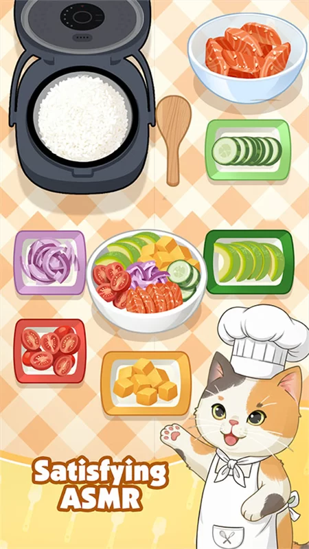 《烹饪美味》最吸引人的核心,莫过于扮演一只可爱的猫咪厨师。游戏打破了传统烹饪游戏的紧张节奏,为你营造了一个完全无压力的创作空间。