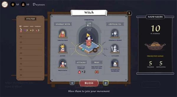 理解核心机制:游戏内置了详细的教学指引。强烈建议新手玩家认真查看,理解如何招募信徒、配置队伍、管理食物等资源,以及征战的基本规则。