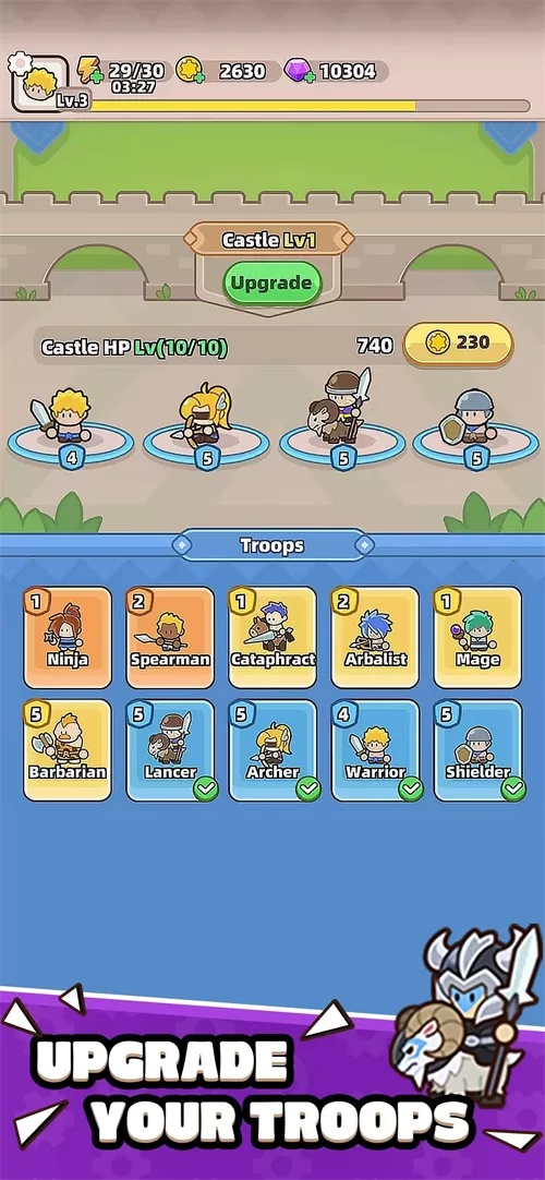 - 兵种解锁与克制:游戏提供了超过10种独特兵种,从基础的坚韧步兵到远程弓箭手,再到拥有强大魔法的传奇骑士。每种兵种都有独特的技能和升级路线,并且存在明确的策略克制关系。理解并利用这种克制关系,是搭配出最强阵容的基石。