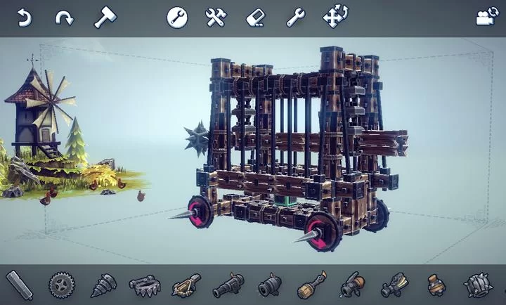 围攻内置菜单MOD版最大的亮点在于其完整的破解功能,让玩家无需花费大量时间解锁内容。游戏基于真实的物理引擎开发,提供超过70种建造模块,从简单的方块到复杂的武器系统一应俱全。通过内置作弊菜单,你可以: