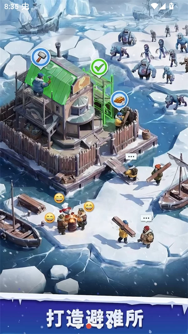 你的起点是一座漂浮在寒冰上的简陋营地。首要任务是建立并升级核心设施——希望熔炉。它不仅是温暖之源,更是所有科技发展的心脏。你需要规划:
