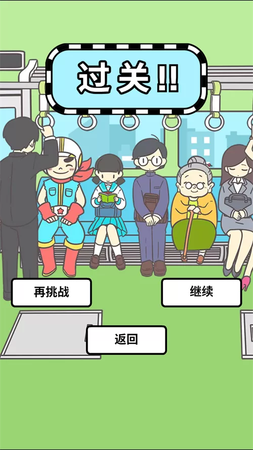 图示:成功安排老太太并自己坐下后,即可通关,体验满满的成就感。