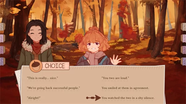 - 情感关系的自然培育:与两位邻居的友谊是故事的主线。游戏没有生硬的好感度数值,而是通过日常对话、共同活动和关键抉择来自然推进关系。你可以选择成为无话不谈的挚友,也可以让青梅竹马的情愫悄然生长,一切尽在你的选择之中。