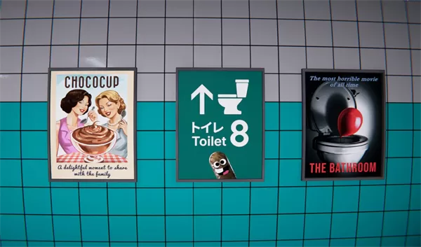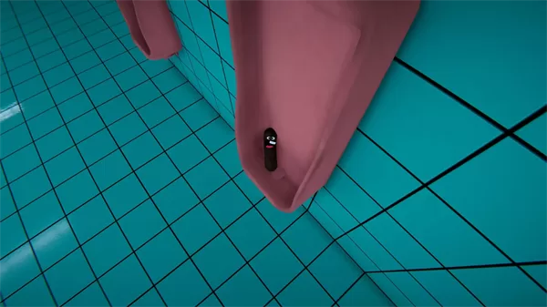 描述:特写镜头聚焦于一个出现“异常”的马桶,展示了游戏将日常物品变得诡异有趣的独特美术风格。