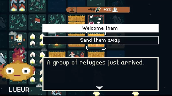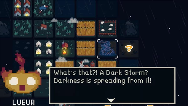 游戏采用了极具风格的64x64像素复古画面。整个色调偏向暗沉,完美烘托出世界被黑暗笼罩的压抑氛围。然而,开发者巧妙地运用了动态光影效果,尤其是当传说中的生物“Lueur”散发出柔和光芒时,那种于绝望中诞生的希望感尤为动人。这种视觉上的对比,本身就是对游戏主题的一次深刻诠释。