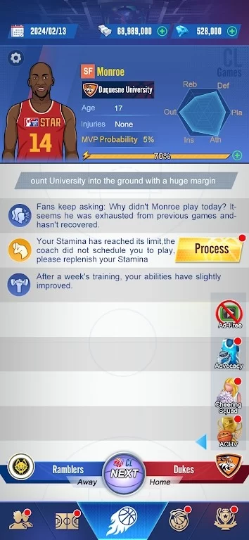 画面和操作对于一款以养成为主导的游戏来说也足够出色,比赛中的关键镜头回放和球星专属动作都很有感觉。当然,如果你追求的是极致的实时操作手感,它可能与传统竞技类篮球手游侧重点不同。但综合来看,对于喜欢经理模式、享受从无到有培养过程的玩家来说,《明星崛起篮球破解版》无疑是一款值得下载体验的精品。它不仅仅是在玩篮球游戏,更是在亲手书写一部属于自己的篮球传奇。
