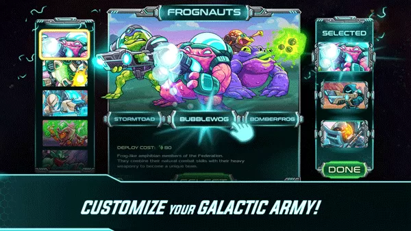 游戏的核心玩法是攻防一体的实时战略塔防。你需要在多个风格迥异的星球上建立防线,同时指挥英雄和部队主动出击。与单纯防守的传统塔防不同,你需要灵活调配空中单位“炽翼”进行骚扰,或派遣近战兵种“科拉斯罗斯”切入敌阵,体验运筹帷幄的指挥官快感。