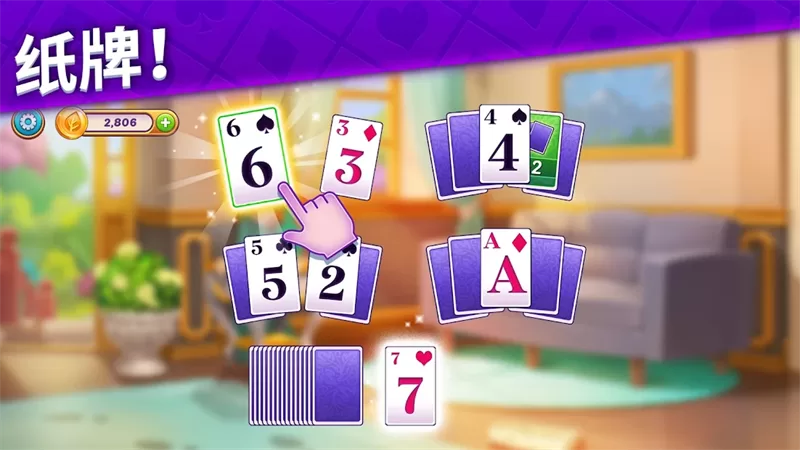 - 经典接龙,策略消除:游戏并非传统三消,而是更考验策略的“三峰纸牌”玩法。你需要根据屏幕底部起始牌的数字,选择场上比其大一点或小一点的牌进行连接,形成连锁,清空所有牌面即可通关。这种玩法简单易上手,但想要达成高连击获得更多星星,则需要一定的规划和预判。