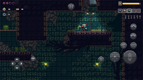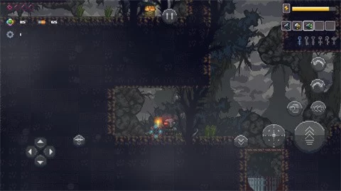 剧情结束后,使用左侧虚拟按键控制角色移动,右侧按键则负责跳跃、射击、冲刺和互动功能。这些操作简单直观,让你专注于探索和战斗。