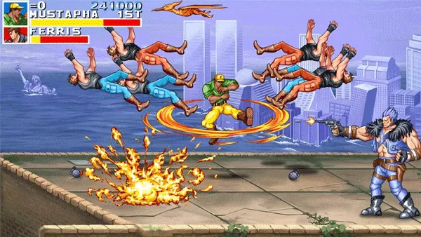 - 画面革新:采用美式废土风格重置画面,在保留经典角色特色的基础上,赋予角色全新视觉魅力。游戏场景完美还原海上城、雨林、沙漠等经典场景,让玩家仿佛重回街机时代