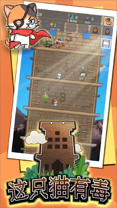你是否在寻找一款轻松解压、又能带来持续成长乐趣的手游?《这只猫有毒官方版》正是这样一款融合了像素风格、挂机放置与策略爬塔玩法的精品游戏。玩家将扮演指挥官,通过点击召唤各式各样的勇士,组建一支强大的队伍,向高达1000层的天牢发起挑战。游戏操作简单易上手,但丰富的兵种、装备和科技系统带来了深度的养成策略,让你在休闲挂机的同时,也能体验到阵容不断变强、层层突破的成就感。无论是利用碎片时间放松,还是享受长期养成的乐趣,这款游戏都能满足你。接下来,就让我们一起深入了解《这只猫有毒手游下载》的独特魅力和详细玩法。