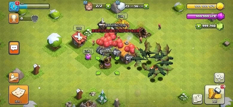 - 防御建筑规划:虽然进攻强势,但一个合理的防御布局可以保护你的资源免遭其他魔改版玩家掠夺。初期优先升级防空火箭、法师塔等对空防御,以应对常见的空中流派。