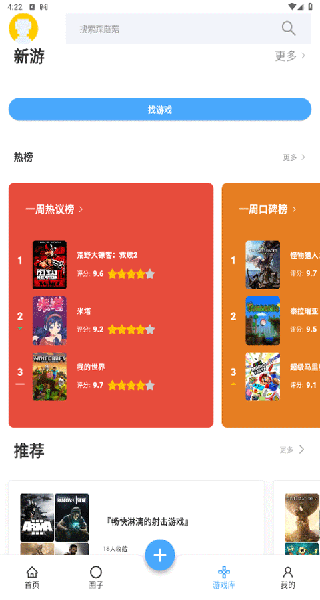 踩蘑菇APP界面简洁,核心游戏圈子和热门资讯一目了然。