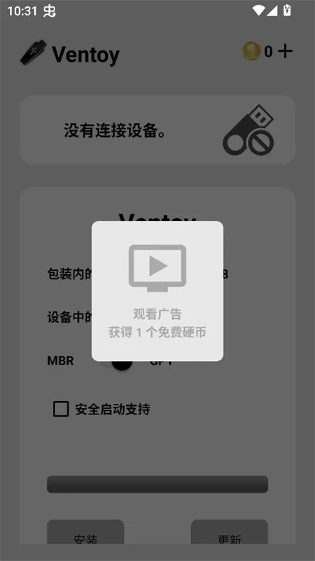 图示:Ventoy制作启动U盘手机版简洁明了的操作界面,引导用户轻松完成制作。
