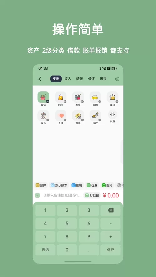 小青账记账操作界面,简单几步完成记账