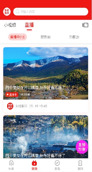 乡村振兴APP主界面,汇聚农产品、文化、资讯于一体。
