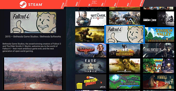 按平台分类的游戏列表,每个游戏都配有封面和详细信息。