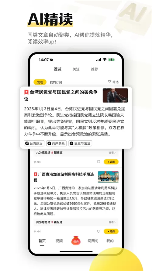 - 利用信息整合:软件是强大的信息整合利器,它能将同一事件的不同报道自动聚合,并通过AI提炼核心要点,助你快速掌握事件全貌。