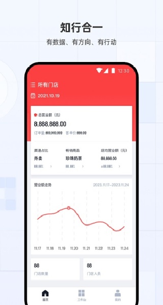 图示:蜜雪通APP集成了数据看板、任务中心等核心模块,界面清晰,操作便捷。
