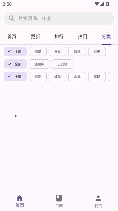 - 智能管理与检索:内置强大的搜索引擎,支持关键词模糊查找和自动联想,帮你快速定位想看的漫画。同时,软件提供按题材、地区、更新状态等多重分类筛选,找漫效率极高。