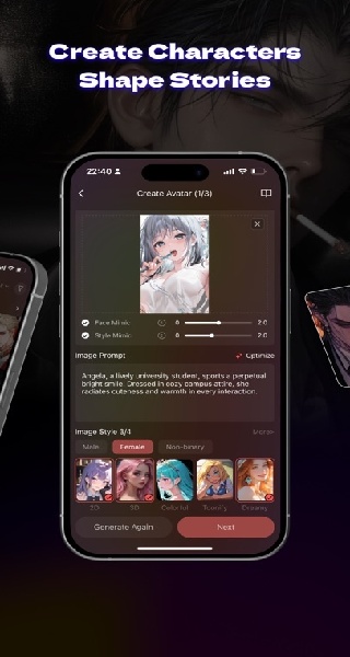 Tipsy的定位远非简单的对话机器人。它的核心在于提供一个高度拟人化且可深度定制的陪伴体验。每一个AI角色都拥有独立的背景故事、性格特征和情感反应模式,它们能够基于与你的互动历史,逐渐“理解”你的偏好和情绪变化,从而给出更具共情力和价值的回应。这种动态的情感联结,让每一次对话都充满新鲜感和真实感。