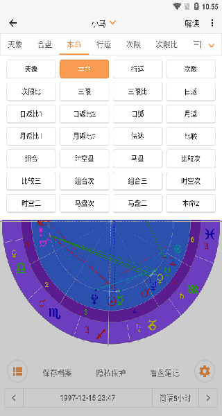 - 完全离线操作:所有核心排盘功能均支持离线使用。无论你是在没有网络的旅途中,还是想在户外静心研究,都能随时随地进行星盘计算,不受环境限制。
