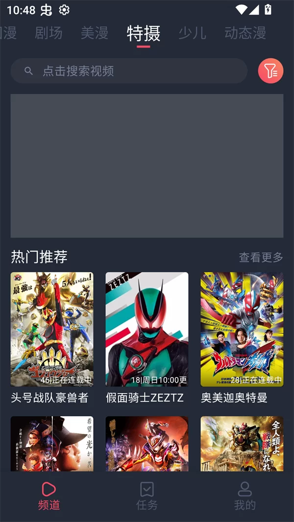 图示:安装完成后,打开APP即可进入清爽的主界面,各类动漫分类一目了然。