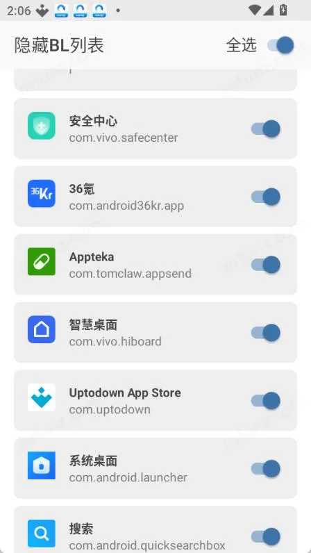 配置隐藏列表:进入软件主界面,你会看到设备上安装的所有应用列表。