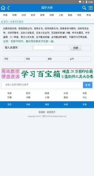 图示:国学大师网APP界面,设计古典雅致,功能分区清晰,便于用户快速上手。