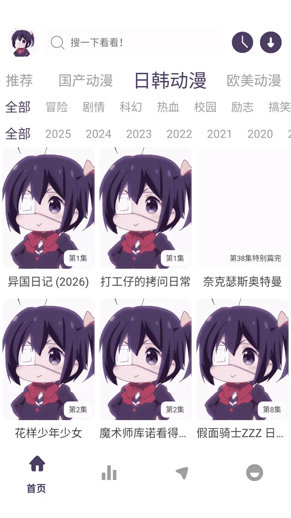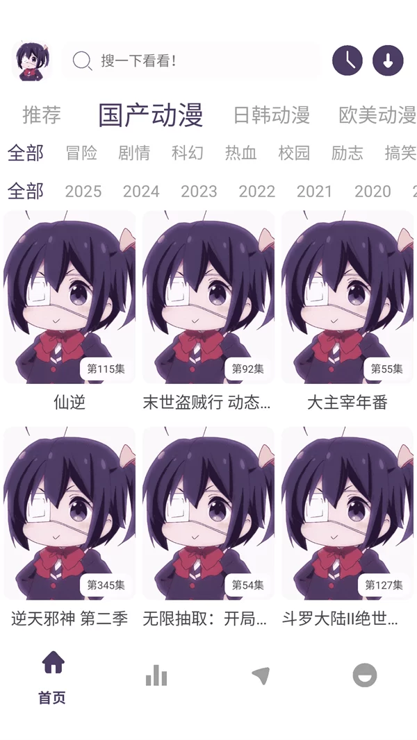 打开APP后,你会看到清晰分类的导航栏。你可以通过“每日更新”、“国漫专区”、“日漫连载”、“经典完结”等分类,快速找到感兴趣的动漫。强大的搜索功能也能帮你直达目标。