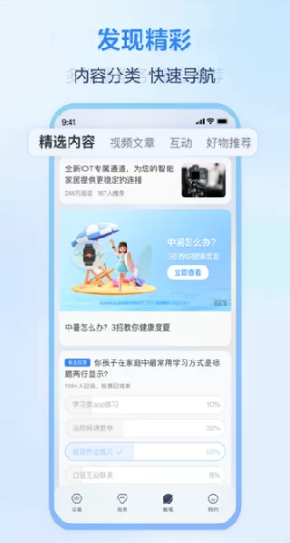 - 生态融合与生活服务集成:除了硬件控制,和家亲还聚合了丰富的本地化生活服务。你可以查看社区公告、联系物业、使用家庭云盘存储珍贵照片和视频,甚至获取周边的消费资源,让智能生活从家庭内部延伸至整个社区。