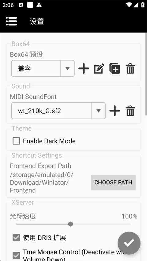 创建并配置模拟容器:打开Winlator Bionic CMOD,授予必要的文件访问权限。点击侧边栏进入“容器”管理界面,点击“+”号创建新容器。