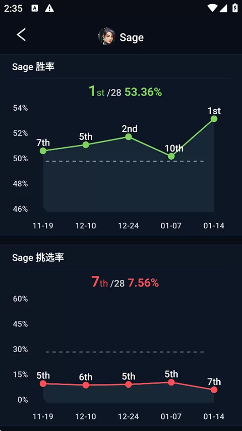 - 全球特工与地图数据:想知道当前版本哪个特工最强?哪张地图进攻方更占优势?软件提供了全球范围内的特工和地图统计数据。你可以查看任意特工在特定地图上的全球平均胜率、挑选率及KDA趋势,这些数据是帮助你选择上分英雄、制定战术的宝贵参考。