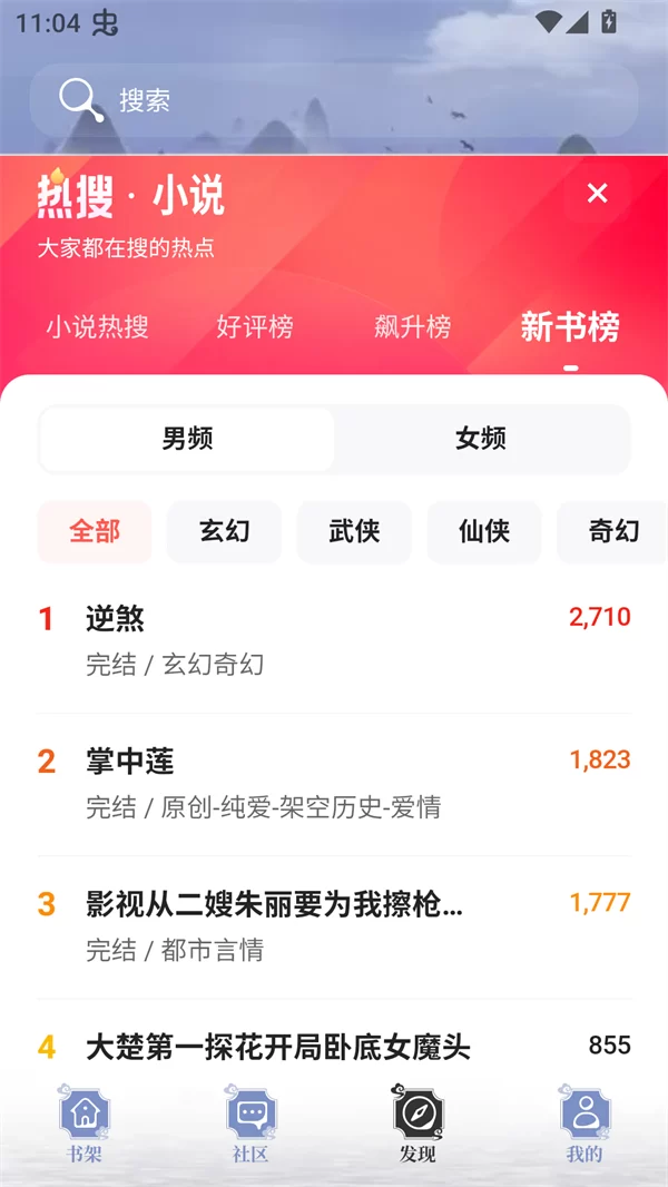 - 探索与发现心仪小说:打开APP后,清晰直观的主界面便呈现在眼前。你可以通过顶部的搜索框直接查找已知书名或作者,也可以通过下方分类导航(如“玄幻”、“都市”)或各类榜单进行浏览探索,轻松找到想读的书。